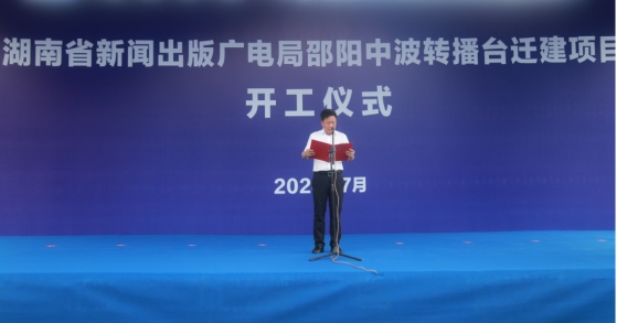 7月26日,邵阳中波转播台迁建项目正式开工,省委宣传部副部长,省广电局党组书记、局长贺辉,邵阳市委副书记、市长华学健,市委常委、宣传部部长杨志慧等领导出席开工仪式。